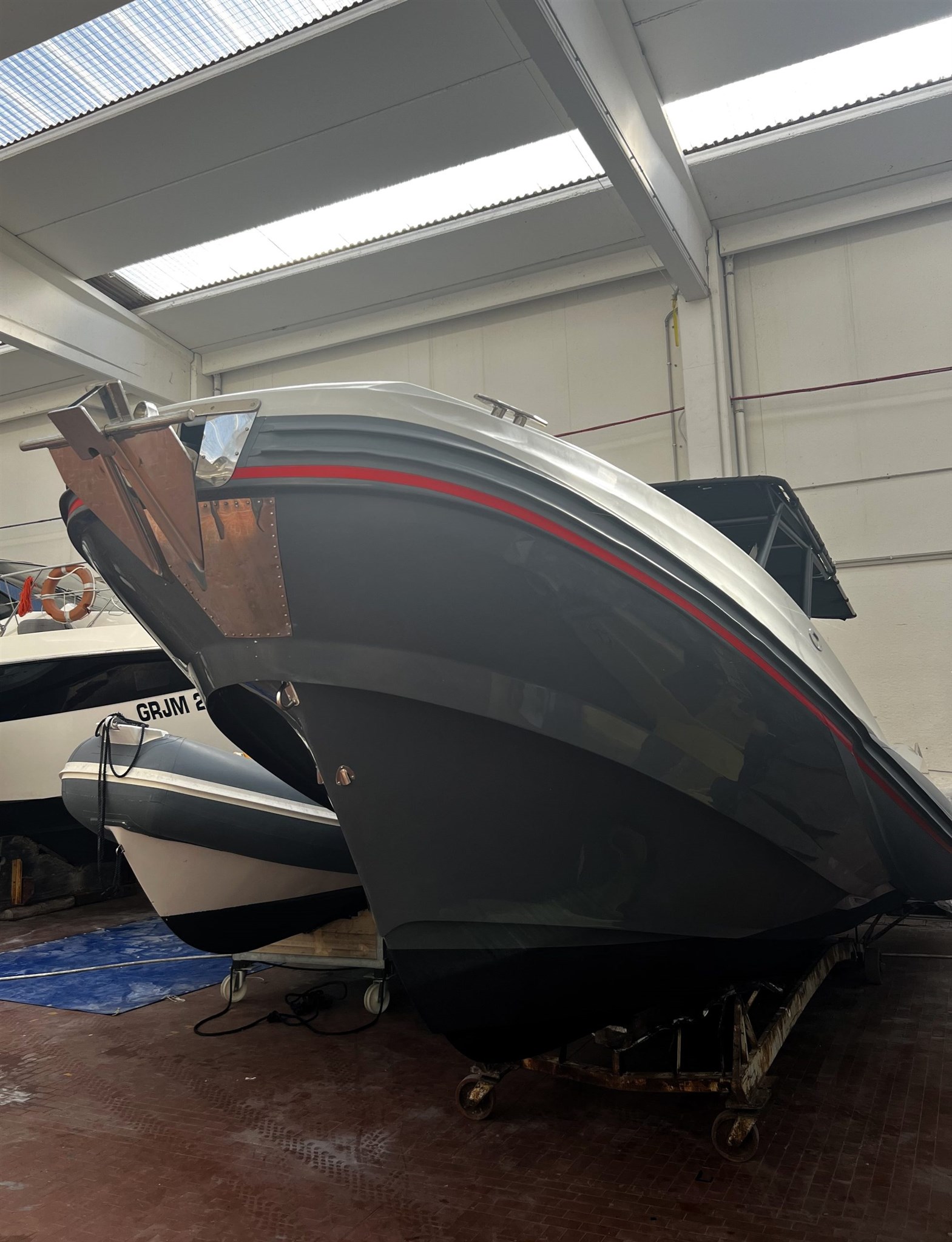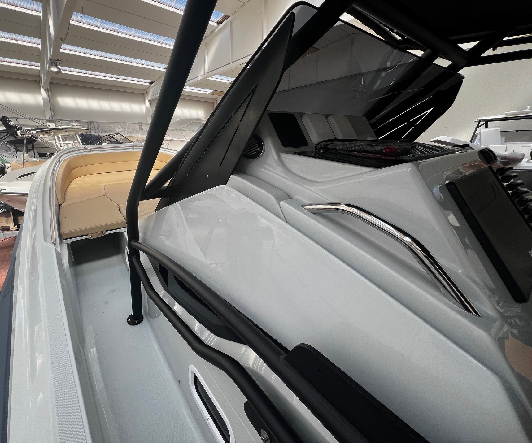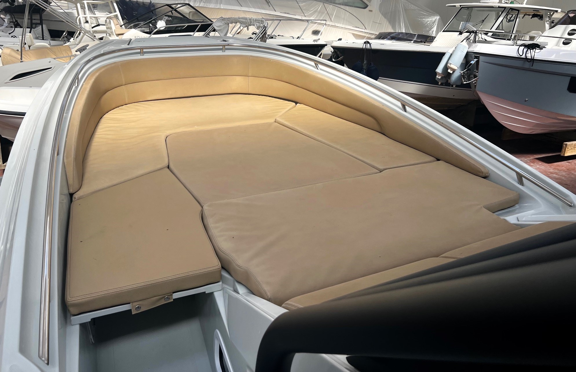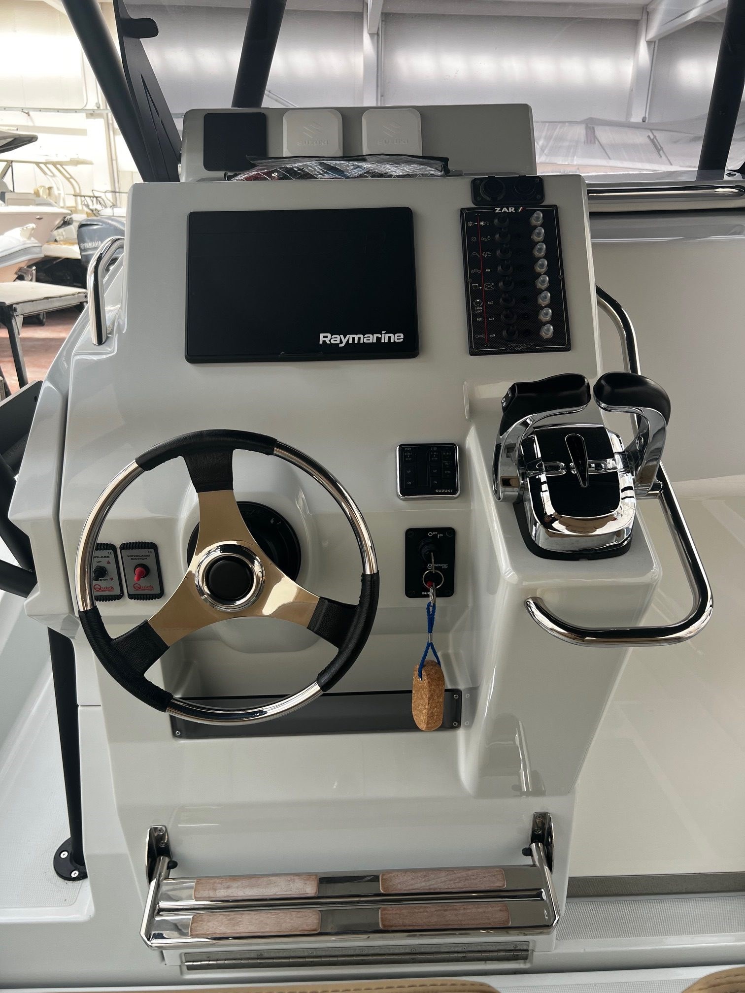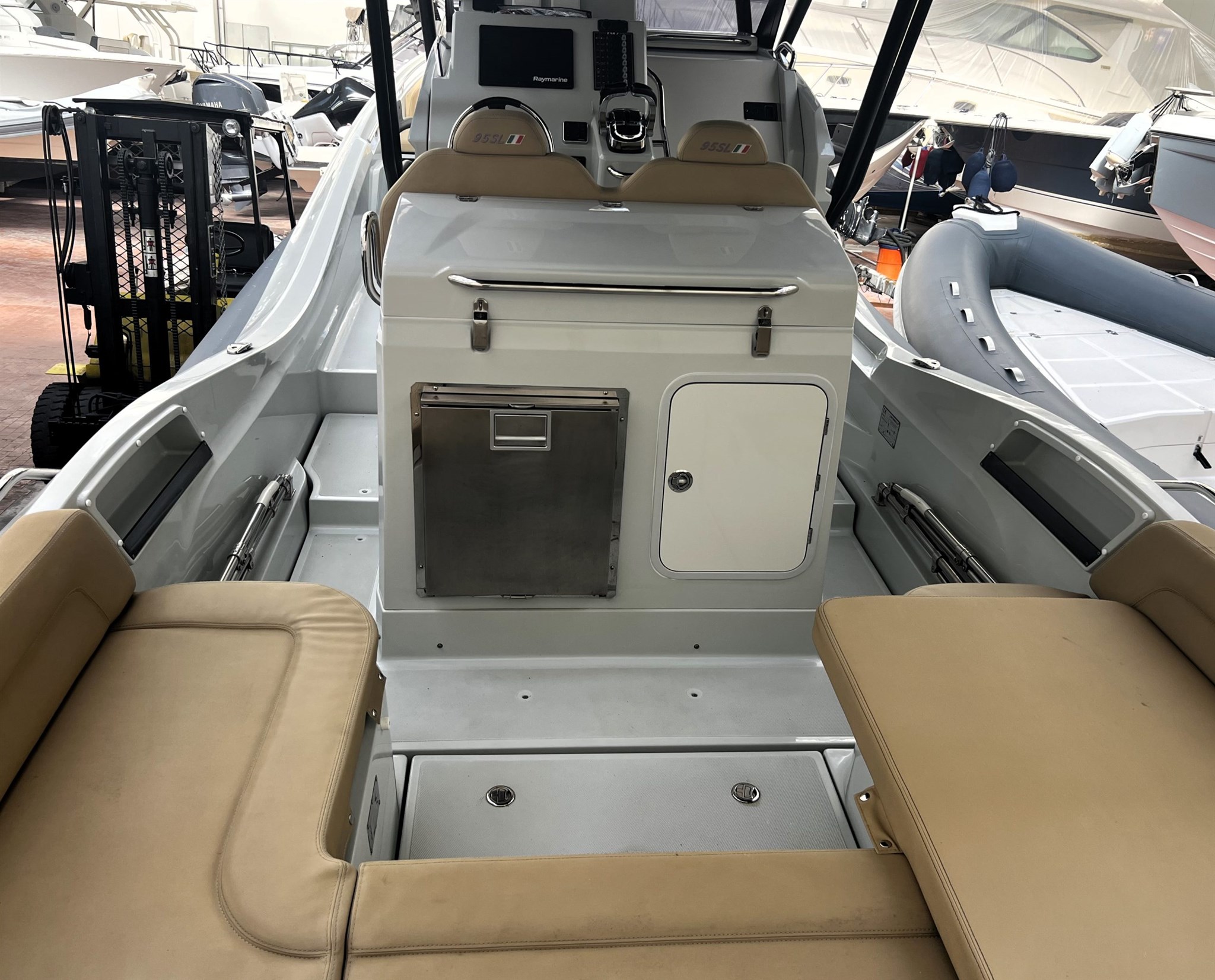 Zar 95 Sport Luxury with 2 x 300hp Suzukis Cabin with double bed, separate bathroom with electric marine toilet and black water, sink and shower; aft and bow sofa where there are two large sunbathing areas that can be converted into as many dinettes; deep-V hull, equipped with side redans to guarantee performance, stability and softness when sailing. Well equipped with new Custom rigid T.Top, double extendable sun awning, complete electronics, 220 V circuit, electric winch, refrigerator and galley, extended aft platforms, complete cushions. Complete polishing of fiberglass and tubular parts, T Top satin black stainless steel new 2025 Absolutely excellent condition