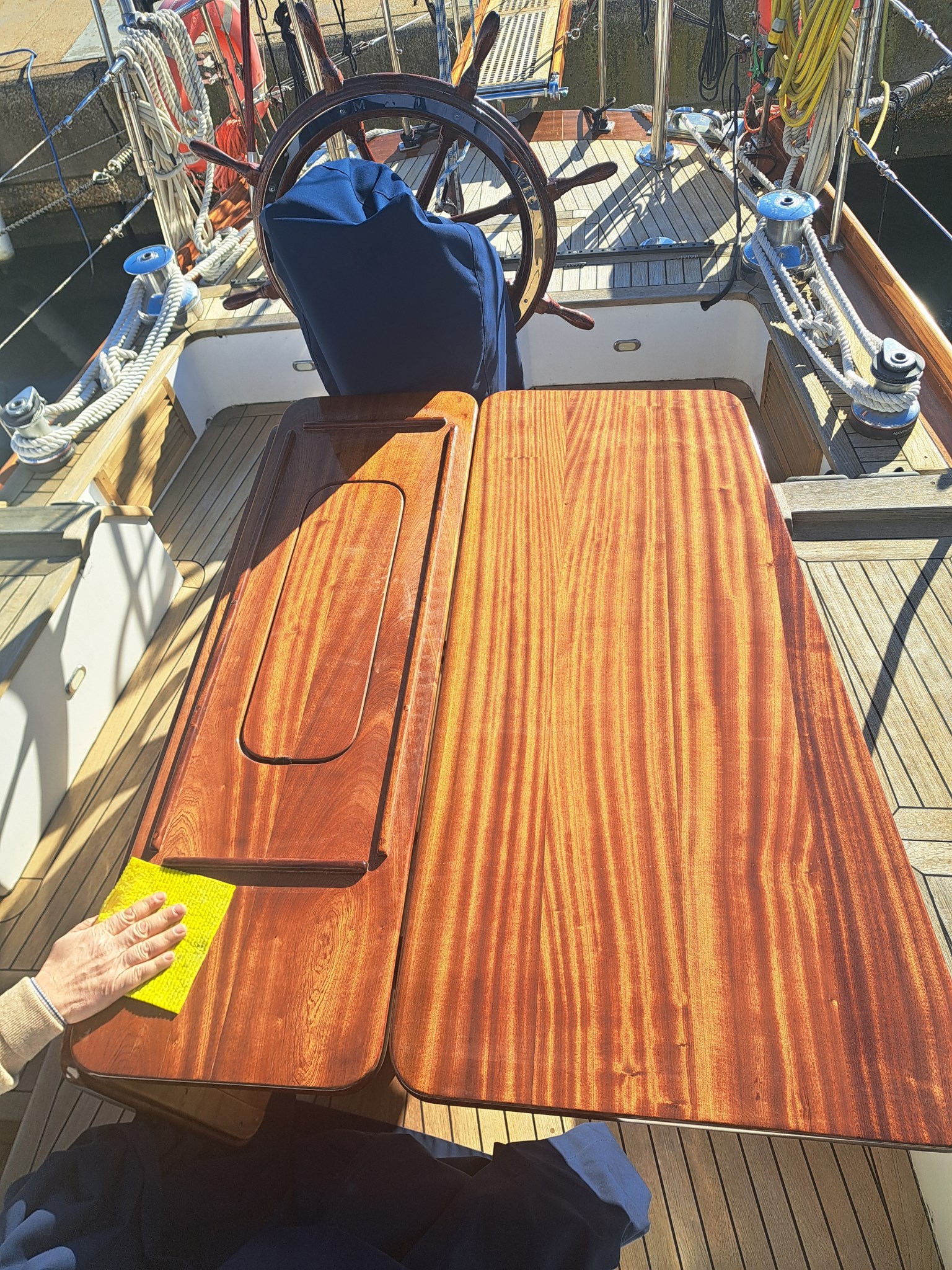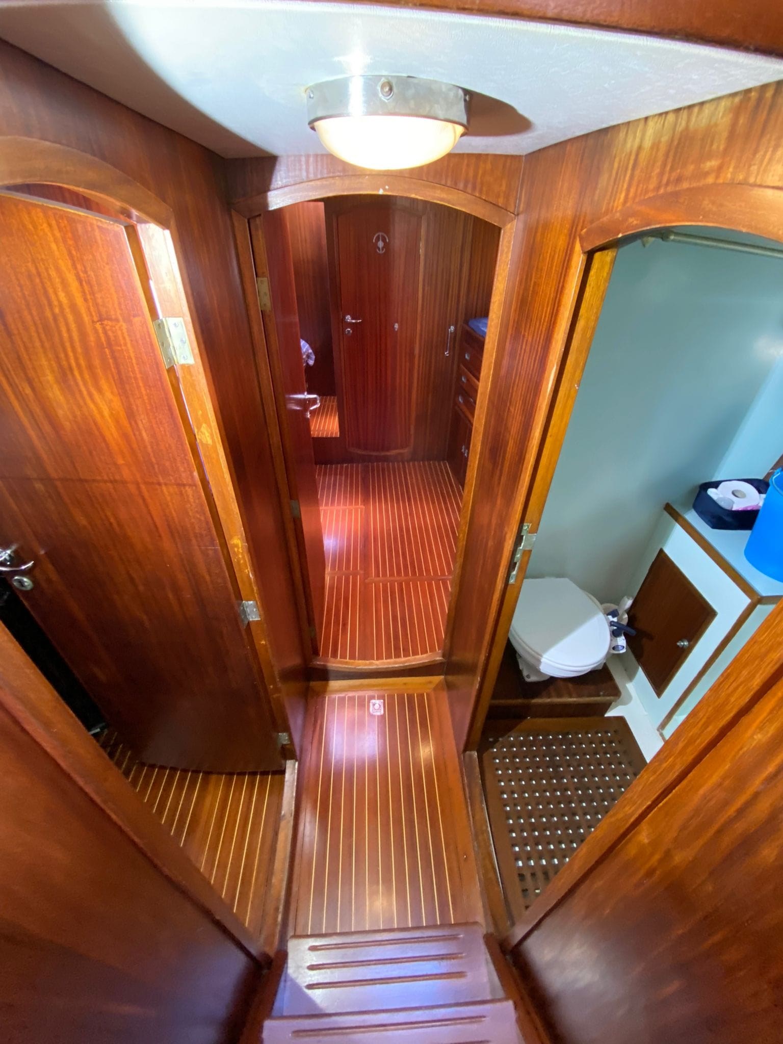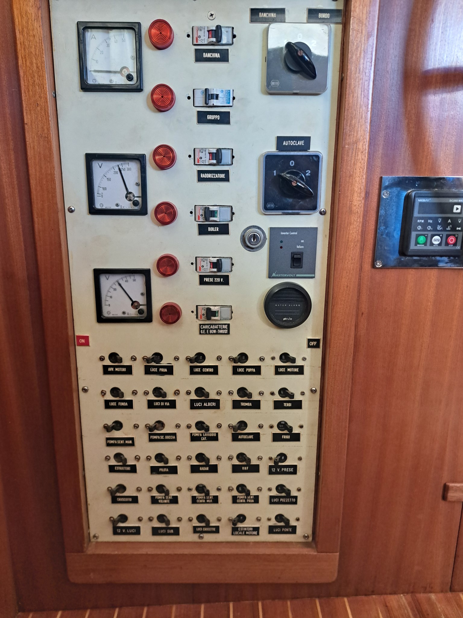 Shipyard: CIRO MASSA (Torre del Greco) Type:Motorsailer, Custom wooden ketch , Year:1974, Engine make:Caterpillar D9304T, hp 169 Engine hours: 2.179 Imp. electric12/24/220 volt Revision:2025 Generator:3,5 KW INVERTER: Mastervolt combi 3,5 kw new 2025 INVERTER Mastervolt 1,5 kw 2023 Strum Wind : Wind Station Raymarine new 2025 GPS: Raymarine Charter Plotter: Interior Raymarine Axiom 12 - 2020 External Axiom 9 - 2024 VHF : Shipmate RS8300 Autopilot: Autohelm ST6000+ Windlass : Lofrans Titan complete with remote control and meter counter (2024 changed engine, shaft and bearings) Radar: yes Heating: yes Depth sounder: yes, Real vision 3D Raymarine Air Conditioning: yes, new 2025. Bow thruster: yes electric with reserved battery 2025 Chargers: Services 100 A 2025, engine 25 A 2023, bow thruster 25 A 2020, generator set 10 A 2020 Interior layout and features : Deck saloon, Flat double aft cabin with en-suite bathroom, L-shaped double central cabin with external bathroom, Full beam forward cabin, with 1 double bed and two single beds with en-suite bathroom, Forward sailor cabin with marine toilet, sink and hand shower, with separate indoor and outdoor access., Engine room under deck saloon, with access from the aft cabin and from the saloon floor., Other accessories : AIS Raymarine 700 transponder, Epirb 2024, Load monitoring system, electrical and service battery charge reserve, Automatic and manual engine room fire extinguishing system, Mastervolt battery charger, Mastervolt inverter, Double circuit, engine batteries (180°) / services (400°) with double alternator Tender keel rigid keel in Quicksilver aluminum 3.20 m, rigid bench with fuel tank and engine starter battery with quick coupling, Mercury 4 t 15 HP engine with electric ignition, (year 2020). Two ocean rafts 8 seats each Eurovinil (2019) Complete life jackets for 16 people MOB system Standard safety equipment, lifeline Gangway with mahogany spars and teak trob LED mast lights Deck lights on led spreaders Navigation lights Step lights on led cockpit Brass led lumishore underwater lights with control unit and scenarios Complete sunbathing cushions on deckhouse deck saloon Cockpit cushions Kitchen machine (3 burners and oven) with gas replaced in 2023 3 outdoor fresh water shower points 1 outdoor salt water shower point Stern davits for tender Tender engine support on deck Ladder for descent to the sea, with the possibility of mounting on both sides Digital antenna for Samsung TV Textile covers for deck equipment Winter canopy Summer awning Sails and Rigging :Rigging and turnbuckles all new 2025 Genoa on forestay new 2025 bombress master, with quickdraws in the cockpit and furling jib Boomed staysail (douglas boom) self-tacking mainsail with mast and wooden boom (douglas). Lazy jack (2025) and lazy bag (2020) Mizzen mainsail with mast and wooden boom (douglas). Lazy jack (2025) and lazy bag (2020) Wood of the laminated dougls trees landed and maintained 2025 Electrical system of the trees completely redone 2025 Rigging, 8 mm, in braided steel new 2025 Moroccan structural steel new 2025 New tensioners 2025 Spreaders and mainmast hardware redone in 2025 Mizzen mast spreaders and hardware redone in 2025 New sheets and halyards 2025 New bakelite blocks 2025